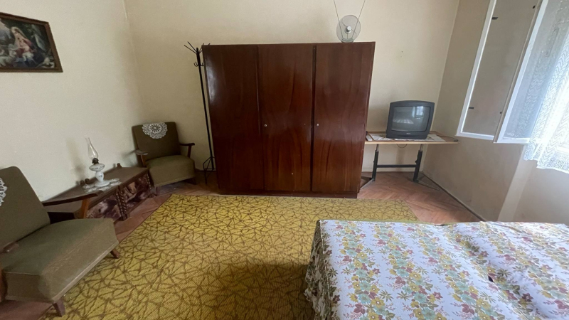 Das Häuschen benötigt Renovierung,es ist circa 90 m2 gross und besteht derzeit aus drei Zimmern, Flur, Badezimmer und Speisekammer.