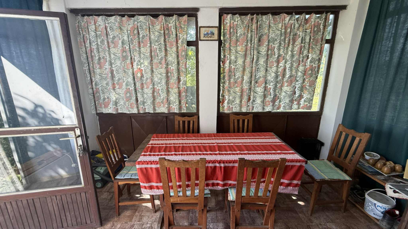 A házikó alsó része 25 m2 nagyságú és kettő helyiség található,az emeleti tetőtér pedig egy külső lépcsőn közelíthető meg jelenleg,ami beépíthető.
