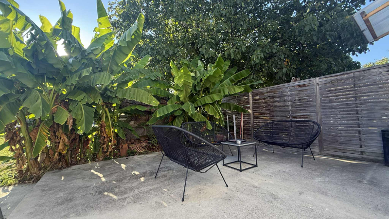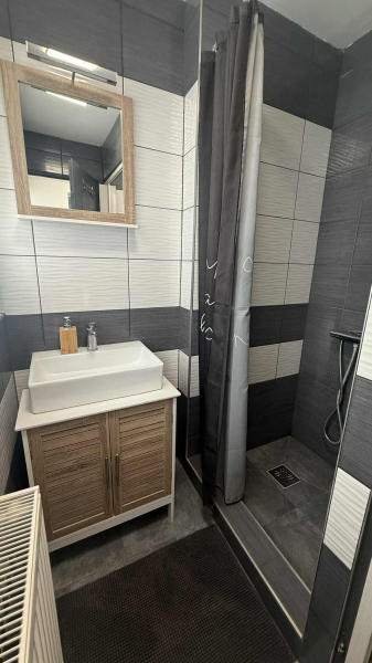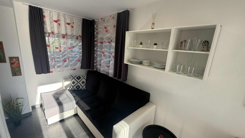 Räume: In der ersten Wohnung, die 70 m² groß ist, befinden sich zwei Schlafzimmer, eine ausgestattete amerikanische Küche mit Esszimmer und Wohnzimmer, ein Badezimmer mit Dusche und ein Heizungsraum mit Gäste-WC. Dazu gehört eine 15 m² große Terrasse.