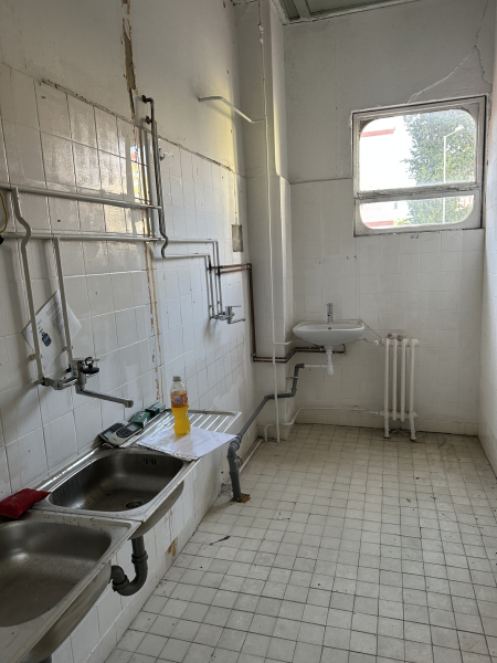 -- eladótér, teakonyha, személyzeti öltöző és mosdó