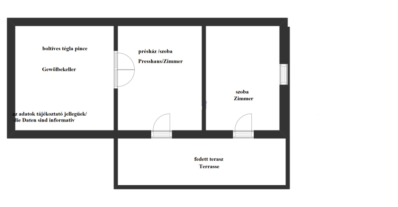 - helyiségek: szoba, présház, pince és 13 nm nagyságú fedett terasz