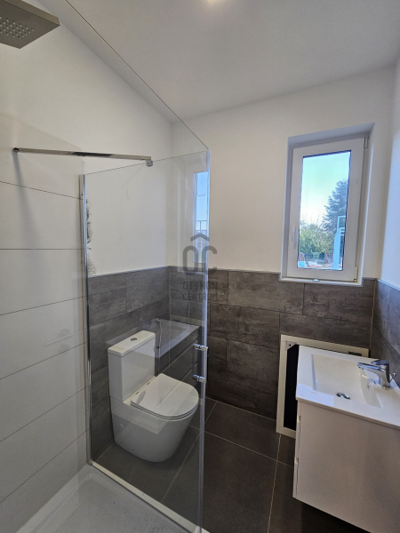 Nyílászárók prémium minőségű 3 légkamrás antracit szürke műanyag ablakok. Fűtése hőtükrös, modern infra padlófűtés, szabályozással.