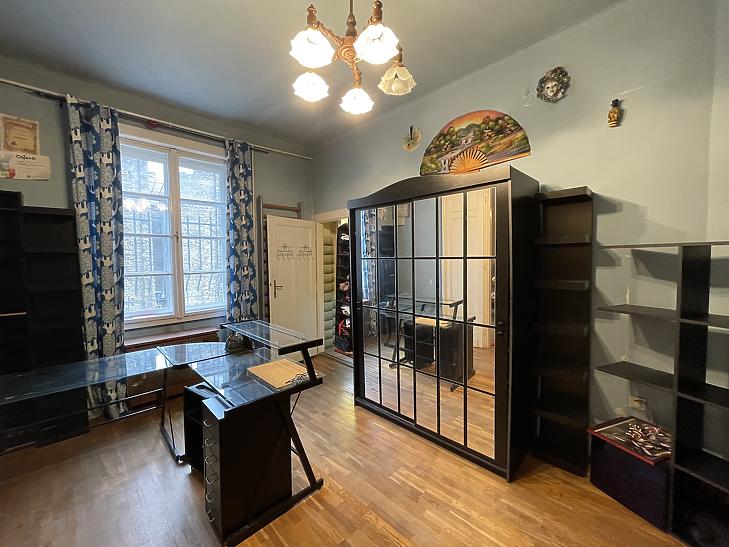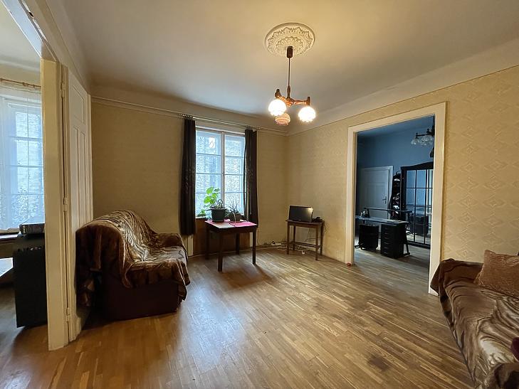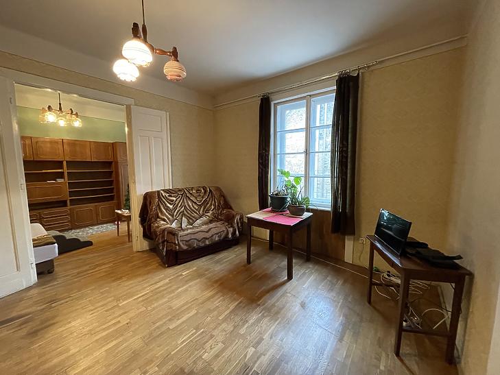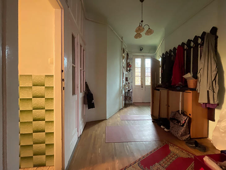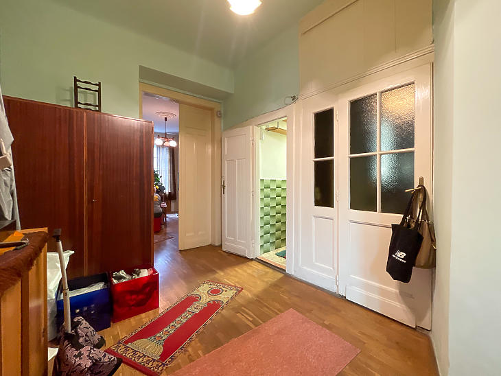 Az ingatlan közepes állapotú, kedvező elosztásának köszönhetően akár két lakássá is alakítható. A négy szobái közül három különnyíló. A szobákban csiszolható, jó állapotú, fa parketta padlózat és fa nyílászárók találhatóak.