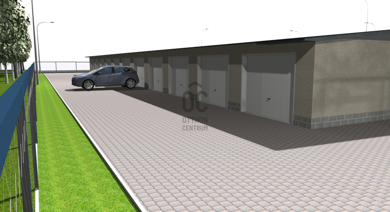 garázsok előtti kifutóval, út csatlakozással.