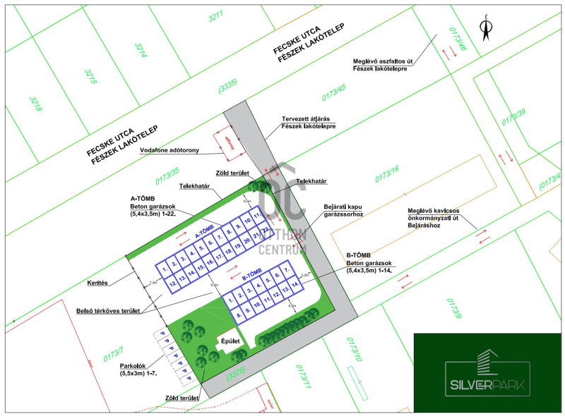 -A tervezett garázsok (22+14 db) egy-egy különálló garázs-sorban, duplasoros kivitelben épülnek,