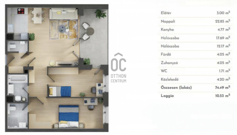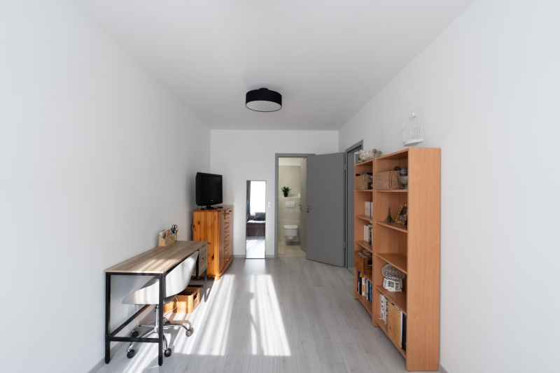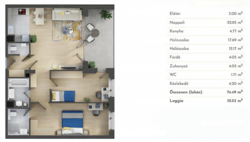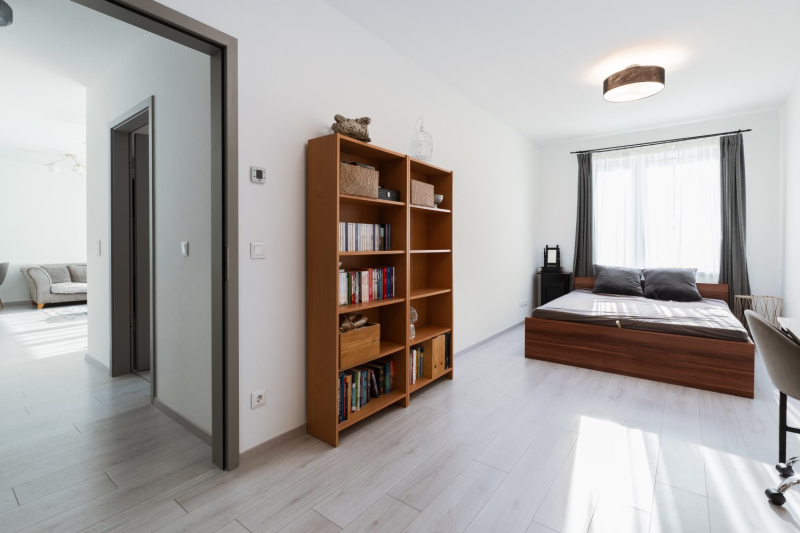 - A lakás praktikus kialakítása mellett tágas érzetet nyújt, amit jól példáz, hogy az egyik hálószoba közel 18 m², ami ebben a kategóriában igazi ritkaság