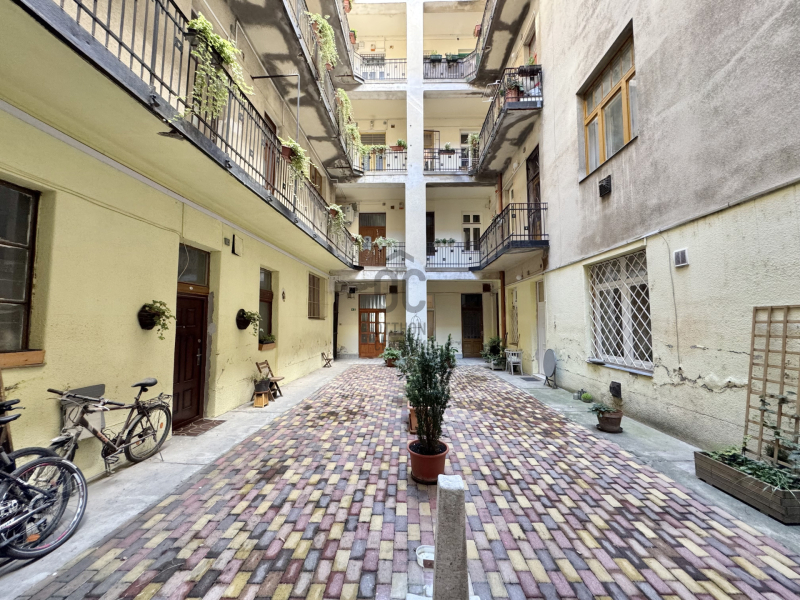 A lakás ablakai a csendes, gondozott belső udvarra néznek, így a belvárosi elhelyezkedés ellenére nyugodt életteret nyújt.