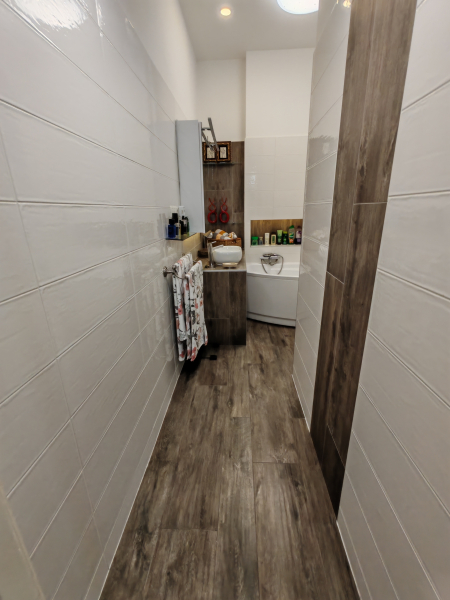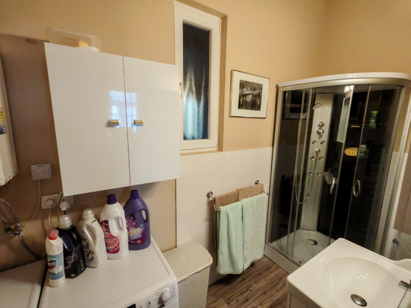 A rendezett, folyamatosan karbantartott ház 3 emeltén található lakás dupla komfortos. Egyik fürdőszobája kádas, míg a másik zuhanyozós. WC a fürdőben és külön bejárattal is található.