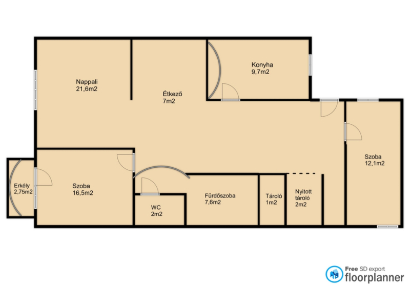 A lakáshoz egy panorámás erkély is tartozik, valamint egy praktikus gardrób és egy zárt tároló is rendelkezésre áll a használati tárgyaknak. A sarokkádas fürdőszoba mellett egy önálló helyiségben található toalett is növeli a lakók komfortérzetét.