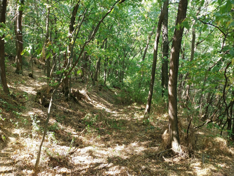 A felső telek mérete: 1978 nm, itt felépítmény nem található. (é. ö: Lk-1.4 /villás övezet/ --> szabadon álló, oldalhatáron álló, ikres, 60 %-os beépíthetőség, min. 20 % zöldfelület, legfeljebb 2 lakásos épület helyezhető el)
