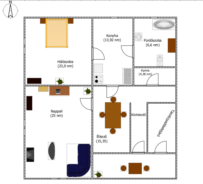 * ásott kút található a telken, amely a kertgondozás költségeit minimalizálhatja
