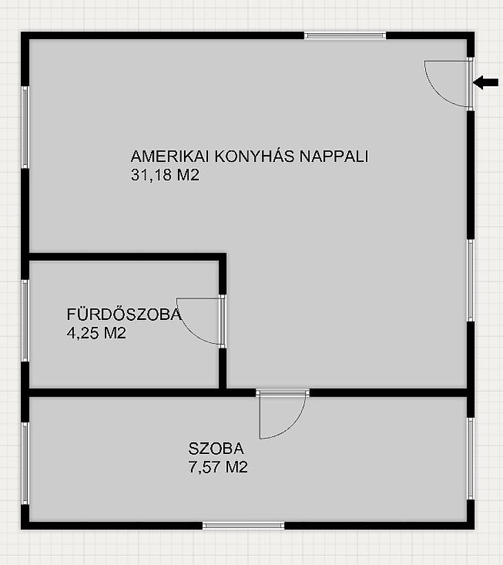 A lakásban tágas étkezős amerikai konyhás nappali, 1 szoba, fürdőszoba kerül kialakításra.