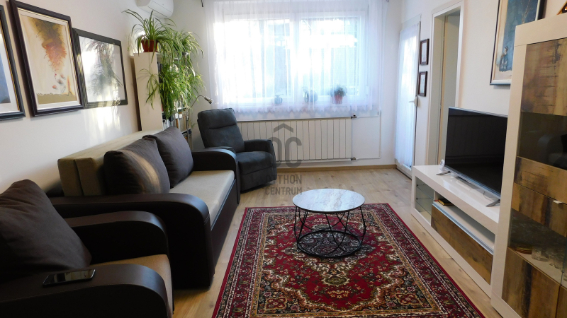 A négylakásos társasház kulturált környéken, egy csendes, biztonságos utcában áll, minden szórakoztató-, kereskedelmi- és közintézmény pár lépésen belül elérhető. A lakás kifogástalan állapotban van, hőszigetelt műanyag nyílászárókkal, redőnnyel, rovarhálóval, a nappaliban klímával. A fűtést a saját tárolóban elhelyezett gáz-cirkó kazán biztosítja radiátoros hőleadással. A lakásban 2 db WC és 2 db fürdő található (az egyik kádas, a másik zuhanykabinos), a konyha új IKEA bútorral és gépekkel felszerelt (tűzhely, elszívó, mosogatógép), a villamos hálózat 3 x 20 A kapacitású.
