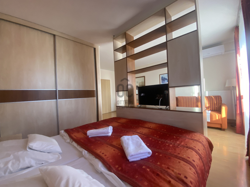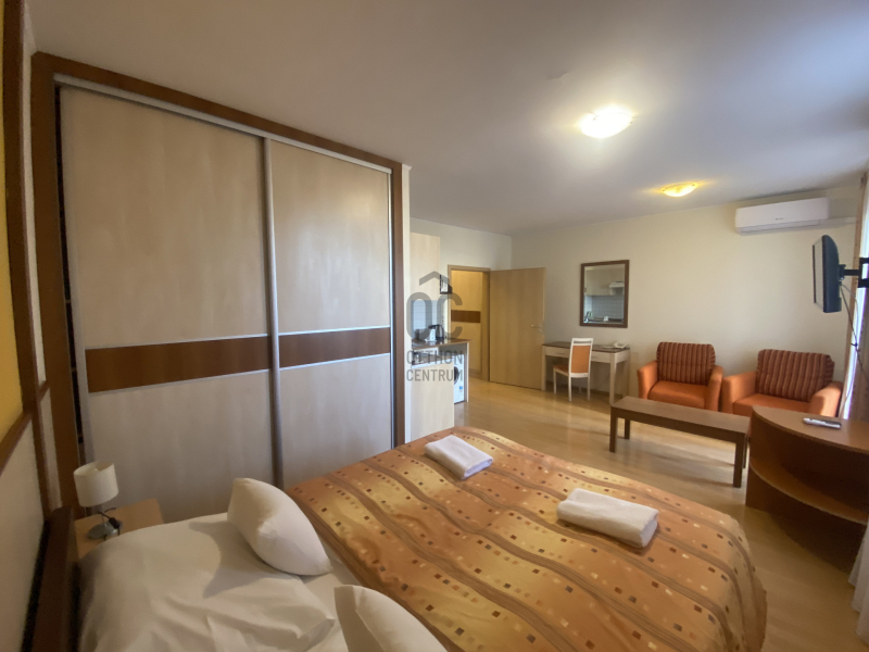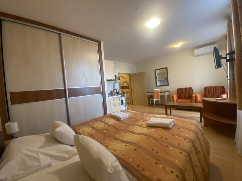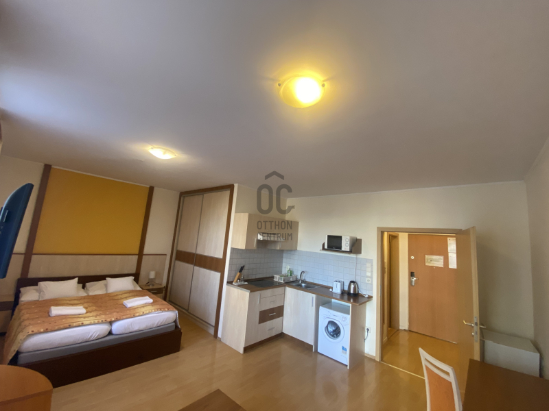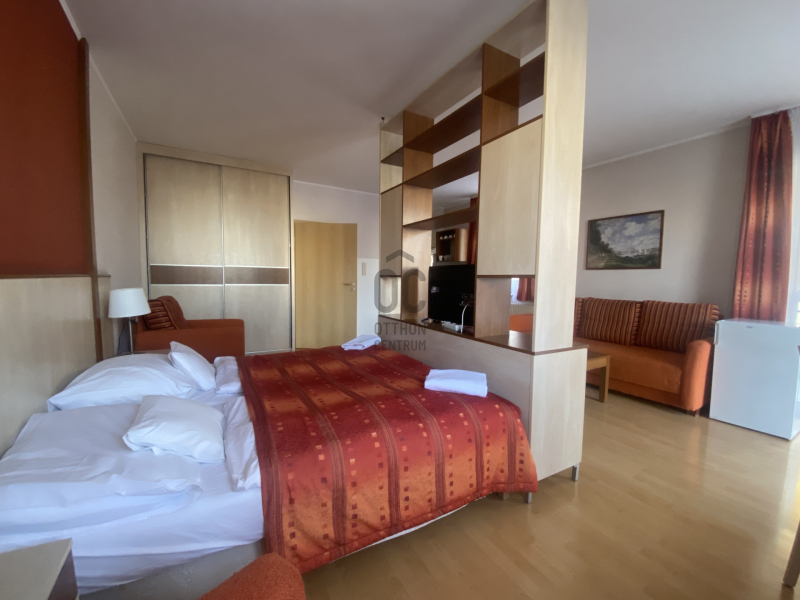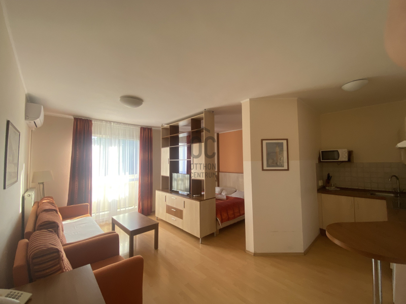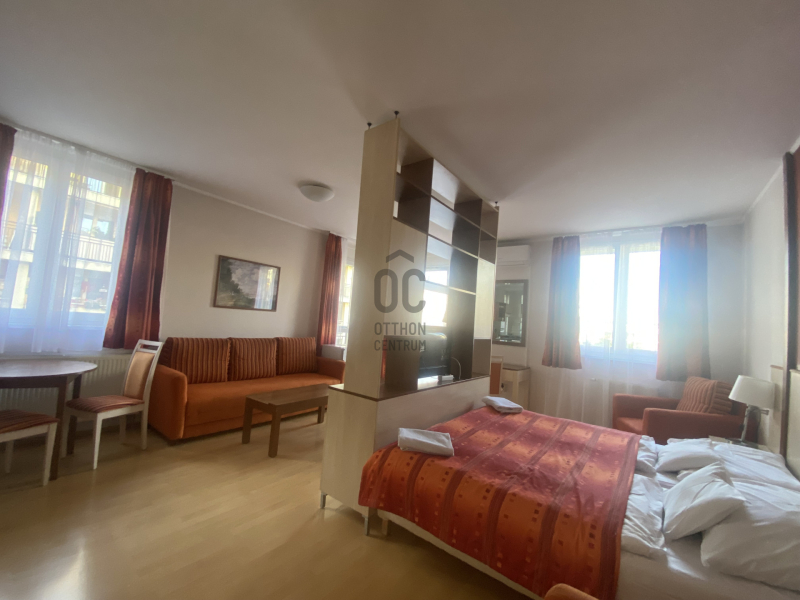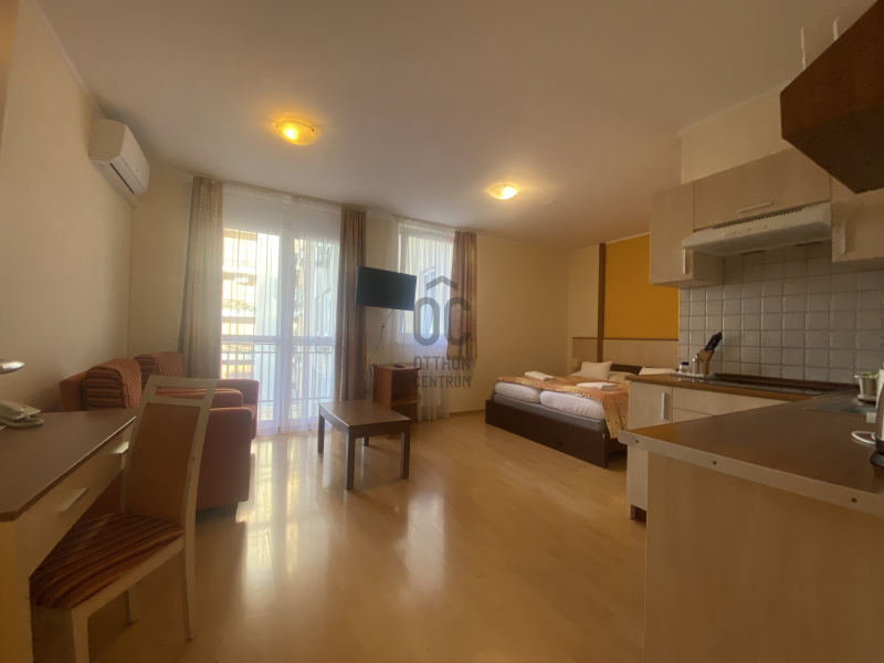 Rezsi: 150 EUR/hó/apartman, amely tartalmazza a hűtést-fűtést, áramot, vizet, internetet, kábel TV-t, heti egyszeri takarítást és a 24 órás recepció szolgáltatását
