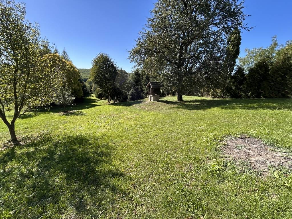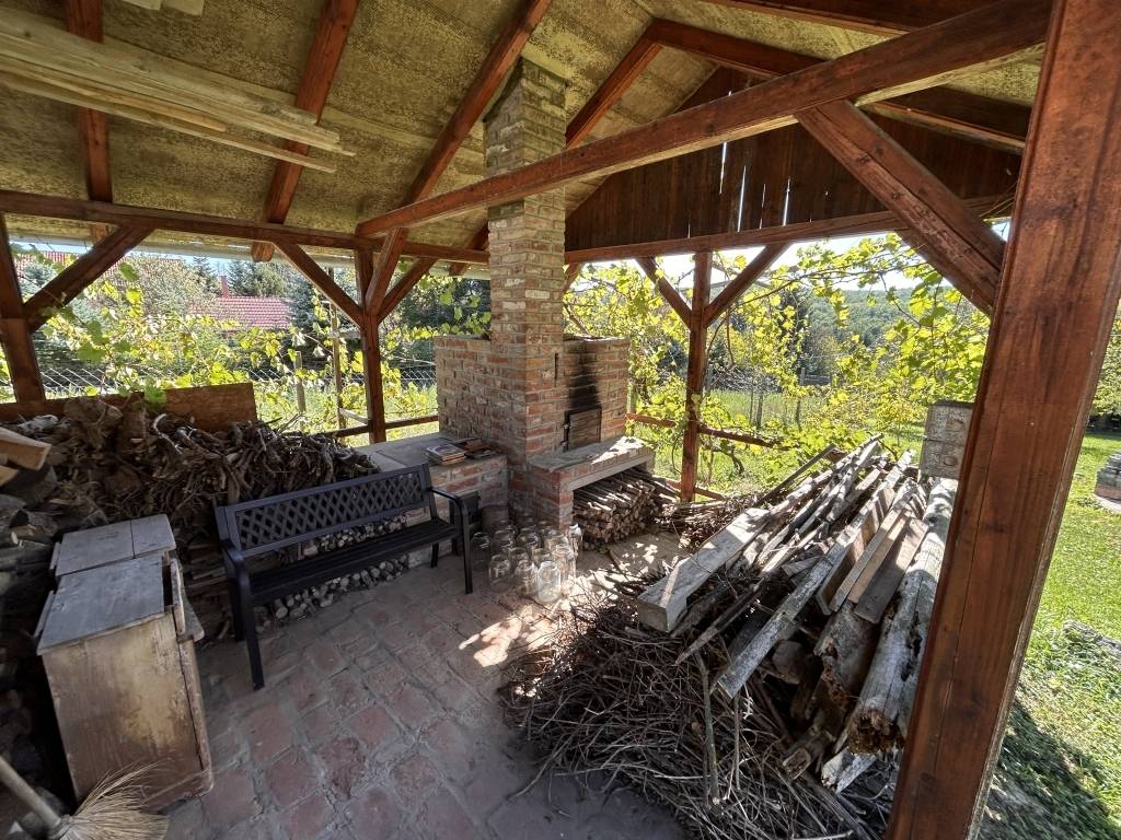 A 6219 nm-es, bekerített telken a 70 nm-es lakóház mellett helyet kapott egy 32 nm-es fedett kiülő kemencével, egy 25 nm-es garázs, egy 31 nm-es felújított istálló, valamint egy 44 nm-es ipari árammal ellátott műhely is. A gondozott kertben gyümölcsfák, kút és kb. 3000 nm-es fenyves található, a telek végében patak csordogál, azon túl pedig erdős domboldal biztosítja a teljes nyugalmat.