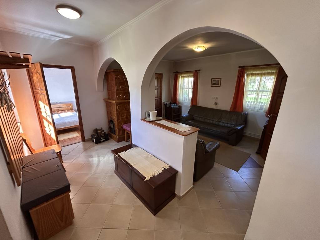 A ház víz- és villanyhálózatra csatlakoztatott, csatorna emésztővel megoldott. Melegvíz és fűtés gázcirkóval működik, de a hangulatos cserépkályhával is kifűthető. A központi nappalit három hálószoba veszi körül, az L alakú épületben 2004-ben kialakított konyha külön bejárattal rendelkezik.