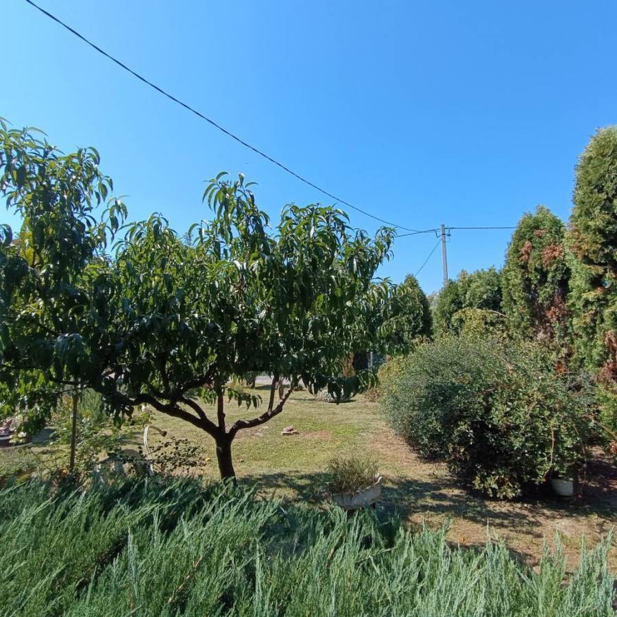 A telek 1068 m2 nagyságú, díszcserjékkel, gyümölcs fákkal beültetett sík terület.