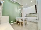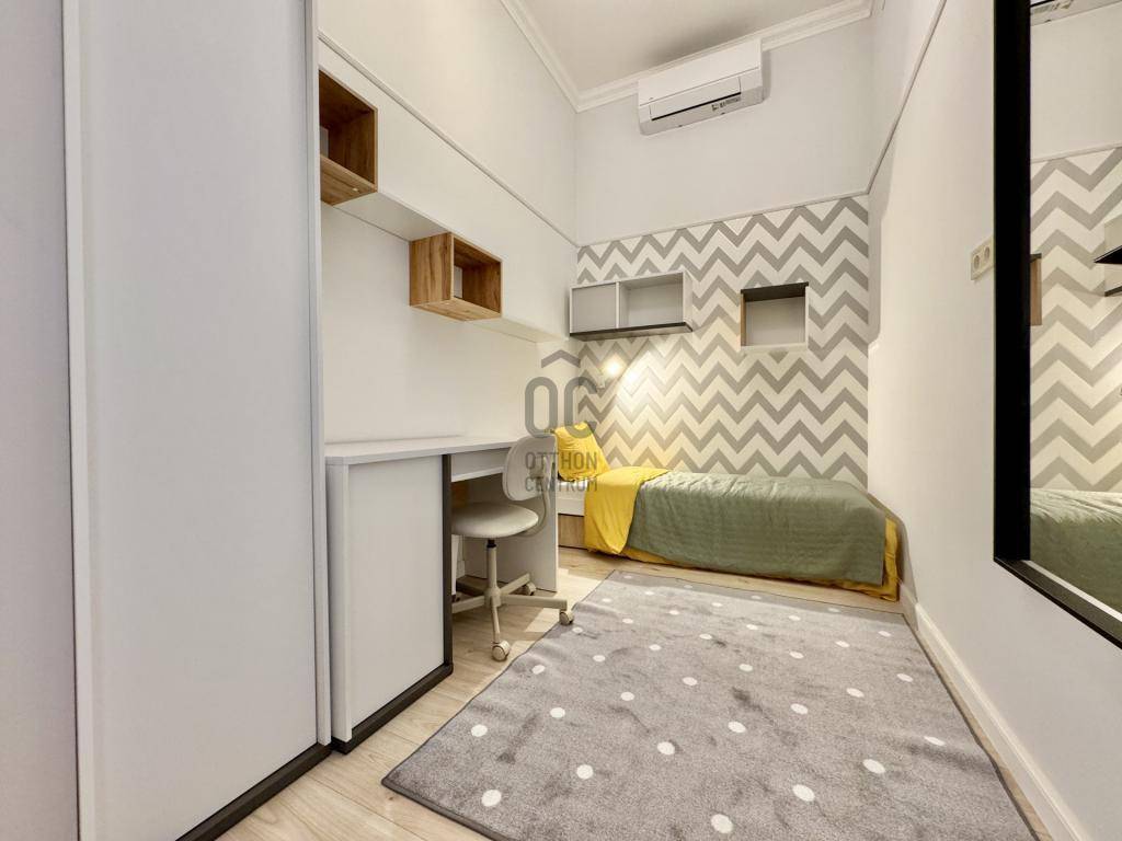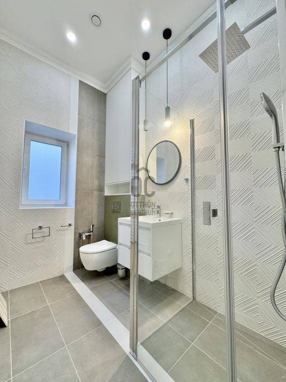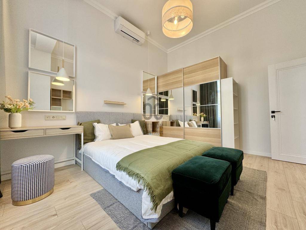A házban eredetileg egy impozáns, 106 m²-es nagypolgári lakás adott otthont generációknak. Az ilyen méretű lakások azonban ma már sokszor elveszítették funkcionalitásukat, ezért született meg a döntés: a hivatalos engedélyekkel és ügyvédi megosztással , két modern otthont alakítottak ki belőle. Így jött létre az egyik lakás, amely most kínálatba került: 64 m²-es, minden részletében vadonatúj és prémium luxus minőségben kivitelezett otthon.