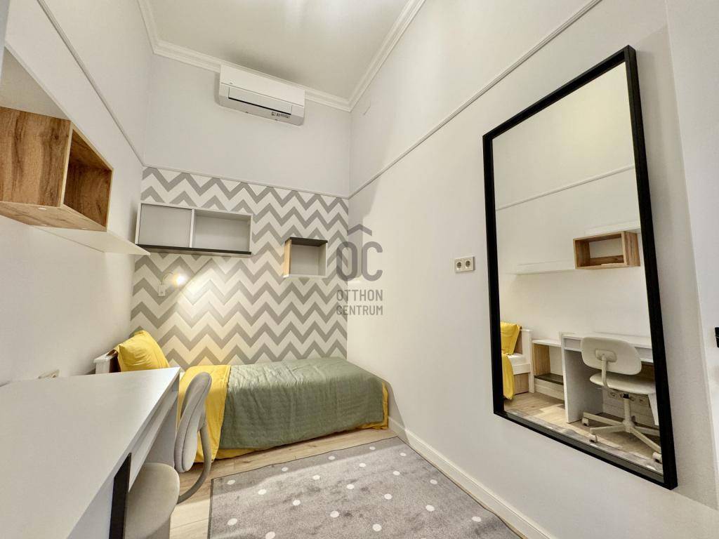 A lakás teljesen berendezve kerül átadásra: a nagy háztartási gépek – mosogatógép, mosógép, hűtő és gáztűzhely – mind benne vannak az árban. Tehát tényleg csak a bőröndöt kell hozni, minden más készen várja az új tulajdonosát.