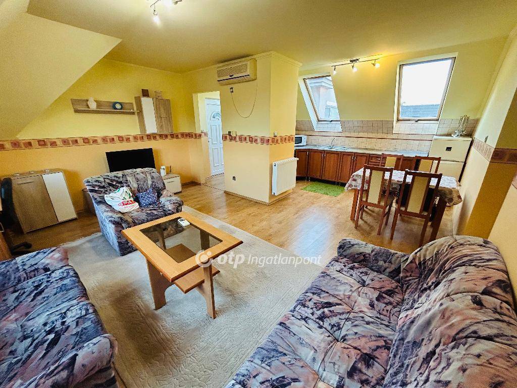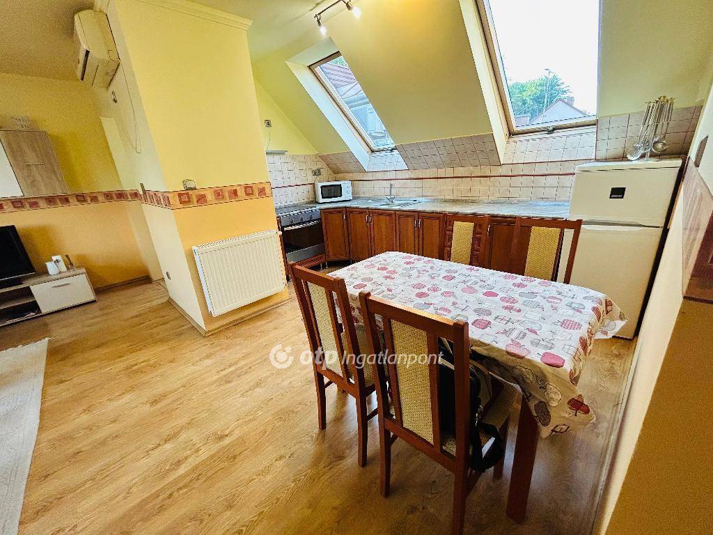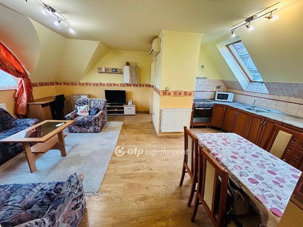- Elosztása: tágas nappali, konyha- étkező egy légtérben, egy szoba erkéllyel, szoba, konyha, fürdőszoba és WC egy helyiségben, előszoba