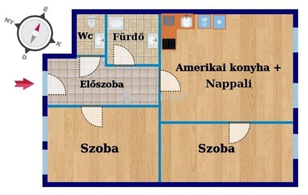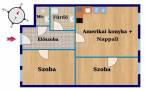 -Amerikai konyhás nappali (25 nm)+ 2 szoba (12nm, 14 nm)