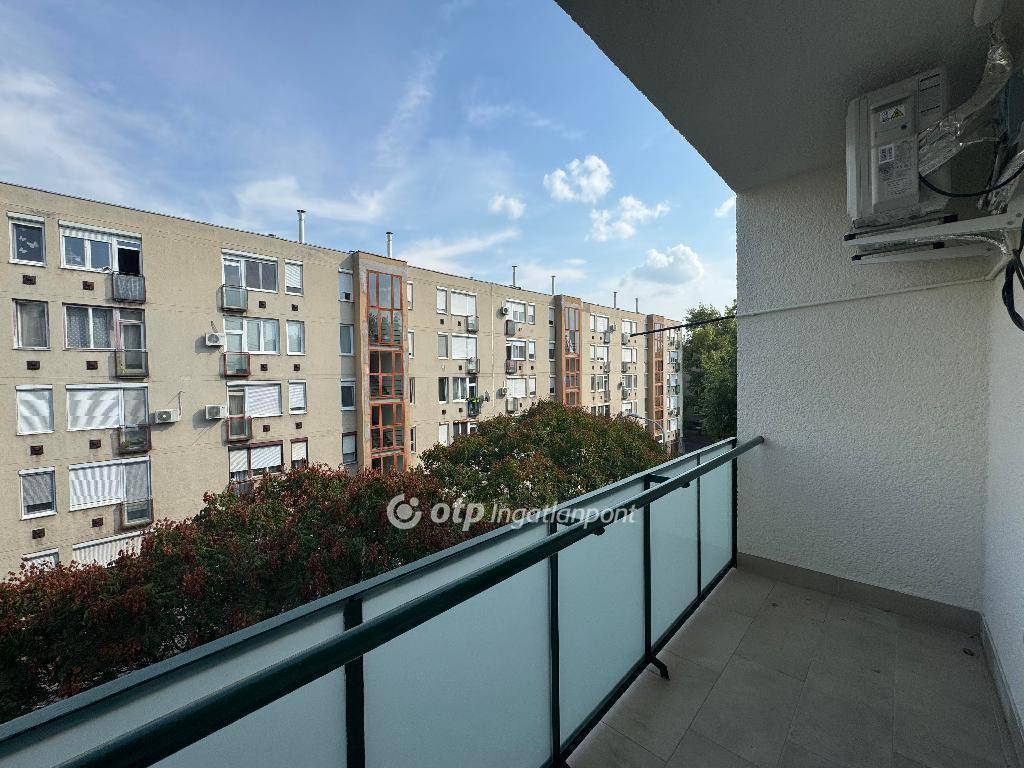 A loggia kellemes zöldre néz. Kilátás nyílik a MOL Campusra, így nemcsak otthonos, de látványos is a tér.