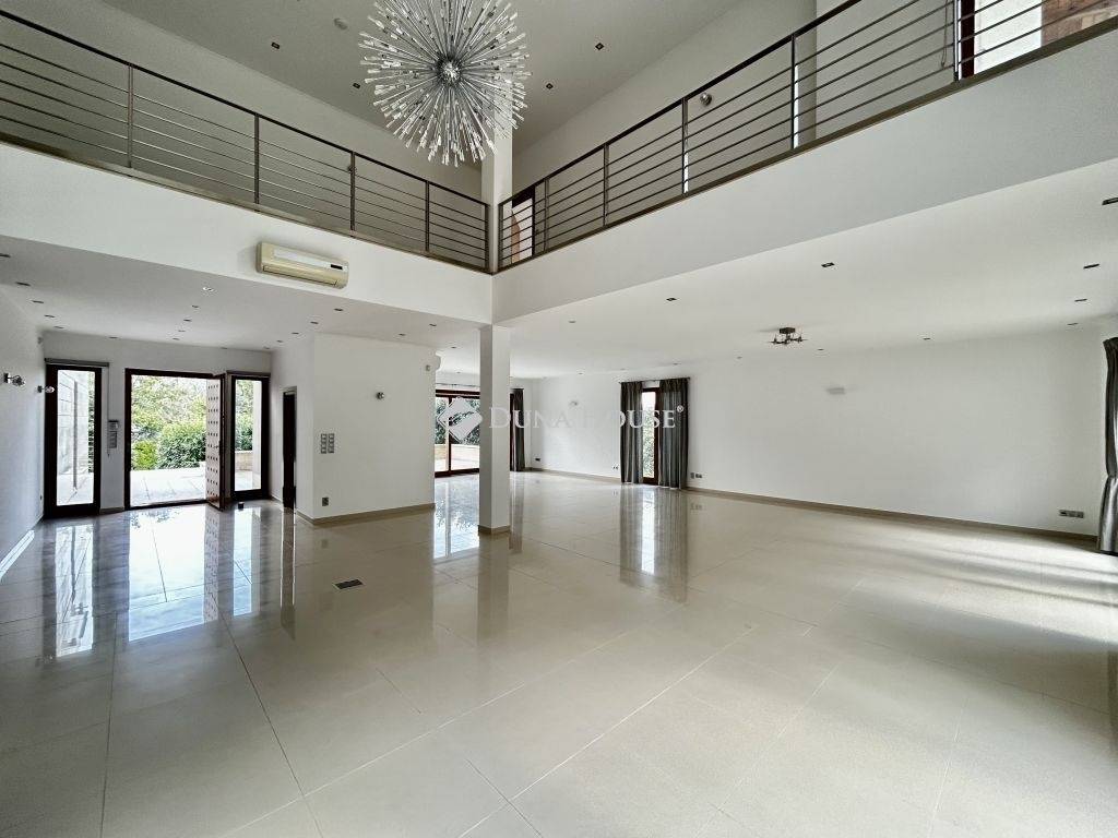 Az alsó szinten egy 5 férőhelyes garázs, tágas fitnesz- és wellnessrész (biliárd szoba, szauna), valamint tárolók találhatók. A nappali dupla légterű, kandalló köré szervezett, közvetlen kapcsolatban az első és a hátsó terasszal. A hátsó kertben wellness és medence kialakítására is van lehetőség. A reprezentatív étkező ideális nagyobb társasági eseményekhez, míg a nagyméretű lakókonyha mindennapi használatra is kényelmes. A felső szinteken könyvtár, szülői hálóblokk saját fürdővel és gardróbbal, valamint három különálló gyermekszoba található, mindegyik saját fürdővel, gardróbbal és terasszal.