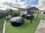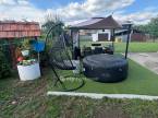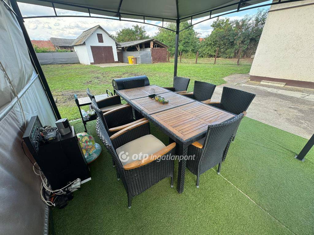 Az ingatlan udvara rendezett, körbekerített, rajta kerti csap, ásott kút, új kerti kiülő, garázs, melléképület, jakuzzi, néhány gyümölcsfa (cseresznye, szilva), szeder.