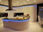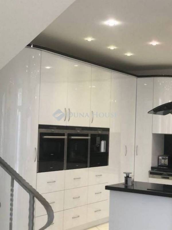 Az egyedi tervezésű minden igényt kielégítő konyha, a legmagasabb minőségben és színvonalon berendezett, SIEMENS beépített konyhagépekkel. Mosogatógép, nagyméretű indukciós tűzhely, sütő, mikró, étel melegen tartó berendezés, páraelszívó és dupla ajtós hűtő is beépítésre került.