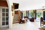 A teraszról közvetlenül egy szépen karbantartott, privát kertbe léphetünk ki, ahol a bokrok és fák teljes nyugalmat és meghittséget teremtenek.