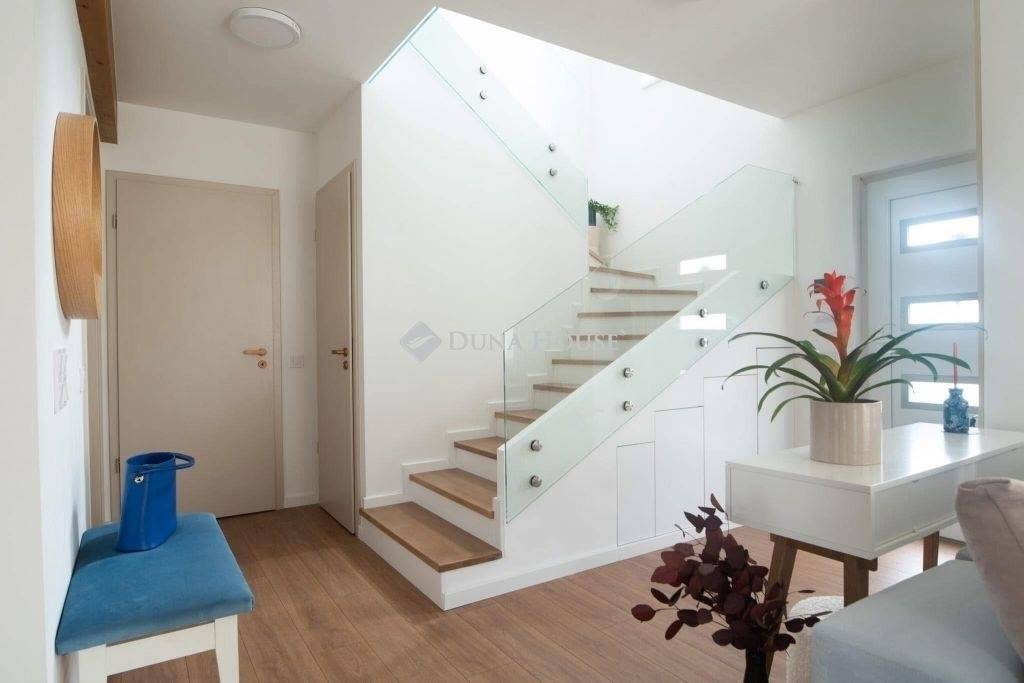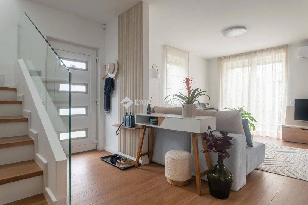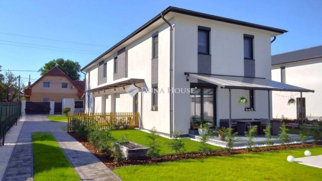 Új építésű, modern családi ház Rákoscsaba-Újtelepen kertkapcsolattal, garázzsal, napelemmel!Eladó egy nettó 120 m²-es, nappali + 3 hálószobás, két szintes, könnyűszerkezetes családi ház Budapest XVII. kerületének egyik legkedveltebb kertvárosi részén, Rákoscsaba-Újtelepen, a Naplás-tó közvetlen közelében.A csendes, zöldövezeti környezet és a modern, magas műszaki színvonalú kivitelezés garantálja a nyugodt, kényelmes mindennapokat.Főbb jellemzők:- Nettó lakóterület: 120 m²- Telek mérete: ~220 m²- Elrendezés: nappali + 3 hálószoba két szinten- Fűtés: Norvég NOBO elektromos infra panelek- Klíma minden helyiségben előkészítve, 1 db inverteres klíma beépítve (ár tartalmazza)- Fedett garázs + térkövezett beálló- Közvetlen kertkapcsolat, teraszFelszereltség (az árban benne van):- Beüzemelt napelemrendszer energiatakarékos üzemeltetés- NOBO fűtőpanelek minden helyiségben- 1 db beépített inverteres klíma, további klímák előkészítve- Riasztórendszer, kamerás kaputelefon- Motoros garázskapu és kertkapu, távirányítóval- Automata öntözőrendszer, füvesített kert- Automata külső világítás- Burkolatok és szaniterek még szabadon választhatók teljesen személyre szabható otthon!Elhelyezkedés, környezet:- Csendes, családbarát utca Rákoscsaba-Újtelepen- A Naplás-tó közelsége lehetőséget ad kikapcsolódásra, sportolásra, sétákra- Kiváló közlekedés: könnyű elérhetőség a város többi részére, közeli tömegközlekedési lehetőségekkel (vasút, busz)Ideális választás:- Fiatal pároknak, családalapítás előtt- Többgyermekes családoknak- Idősebbeknek, akik nyugodt, kertvárosi környezetre vágynak- Mindenkinek, aki modern, költséghatékony, környezetbarát új építésű otthont keresTovábbi részletekért és személyes megtekintésért keressen bizalommal!Ez a ház tökéletes ötvözete a modern technológiának és a kertvárosi nyugalomnak.
