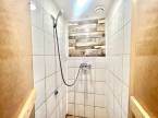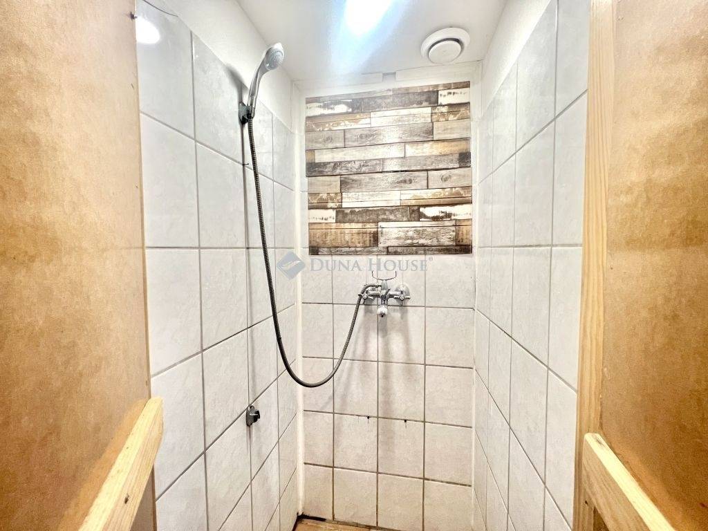 A fürdőszoba zuhanyfülkével és WC-vel felszerelt, a melegvíz ellátás megoldott.