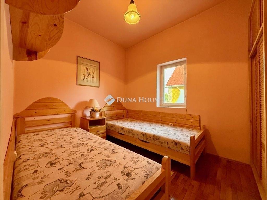 *** Eladó állandó lakhatásra alkalmas nyaraló Alsóörsön a strand közelében! ***Megvételre kínálok, egy téliesített, összközműves, téglaépítésű, 77,5 négyzetméteres nyaralót Alsóörs nyugodt, csendes környezetében.A nyaralóhoz 583 négyzetméteres, beállt növényzettel rendelkező telekterület tartozik. Az ingatlant nemrég teljes körűen felújították, korszerűsítették. A fűtésről gázkonvektor, valamint egy hangulatos cserépkályha gondoskodik, a hűtés klímával biztosított. A melegvizet Ariston wifis bojler biztosítja. A nyaralóban nappali, két hálószoba, fürdőszoba+WC, konyha, valamint egy fedett, üvegablakos, szúnyoghálóval felszerelt terasz került kialakításra.Az ingatlan alatt egy 23 négyzetméteres boros pince található. Az udvarban, rengeteg ápolt, hőségben árnyat adó növény, fa alatt több helyiséget alakítottak ki, amelyekben lehetőség nyílik főzésre, az udvarban szabadtéri sütögetésre, társasági összejövetelek tartására. A területen működő kút is található. Az állandó lakásnak is alkalmas nyaralóban négy, de akár hat ember kényelmesen elférhet. A közelben óvoda, iskola, az országos összetételű kézilabda utánpótlásnak is helyet biztosító sportcsarnok, szállodák, egész évben nyitva lévő élelmiszerüzlet, posta, éttermek, cukrászda, kávézó, található, a közeli kemping strandja gyalog körülbelül tíz perc távolságra elérhető. A községi strand mindössze 10 perc távolságra van, ahol számos büfé és üzlet kínálatából lehet válogatni. A szomszédban állandó lakók élnek, így a biztonság egész évben kiemelten garantált. Az épület különösen ideális meghitt balatoni környezetre vágyó embereknek. Amennyiben hirdetésem felkeltette érdeklődését, valamint további információra van szüksége, várom hívását.