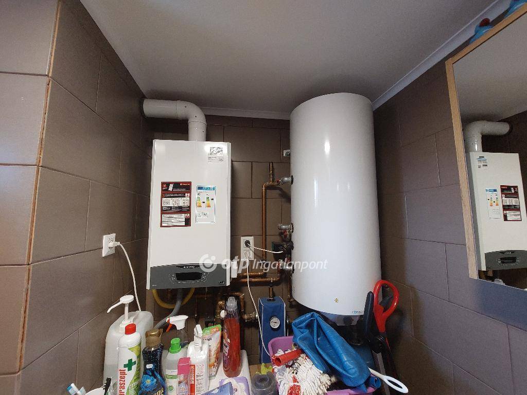 Az otthon melegét gázkazán + indirekt bojler biztosítja, radiátoros hőleadással, korszerű, energiatakarékos megoldást nyújtva.