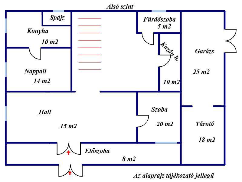 Az ingatlan földszintjén található tágas előszoba,1db szoba,konyha,étkező,kamra,nappali,hall/társalgó,fürdőszoba.