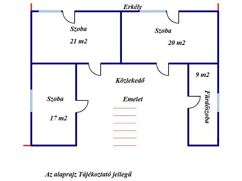 Az emeleten:3 nagy szoba,fürdőszoba,wc.