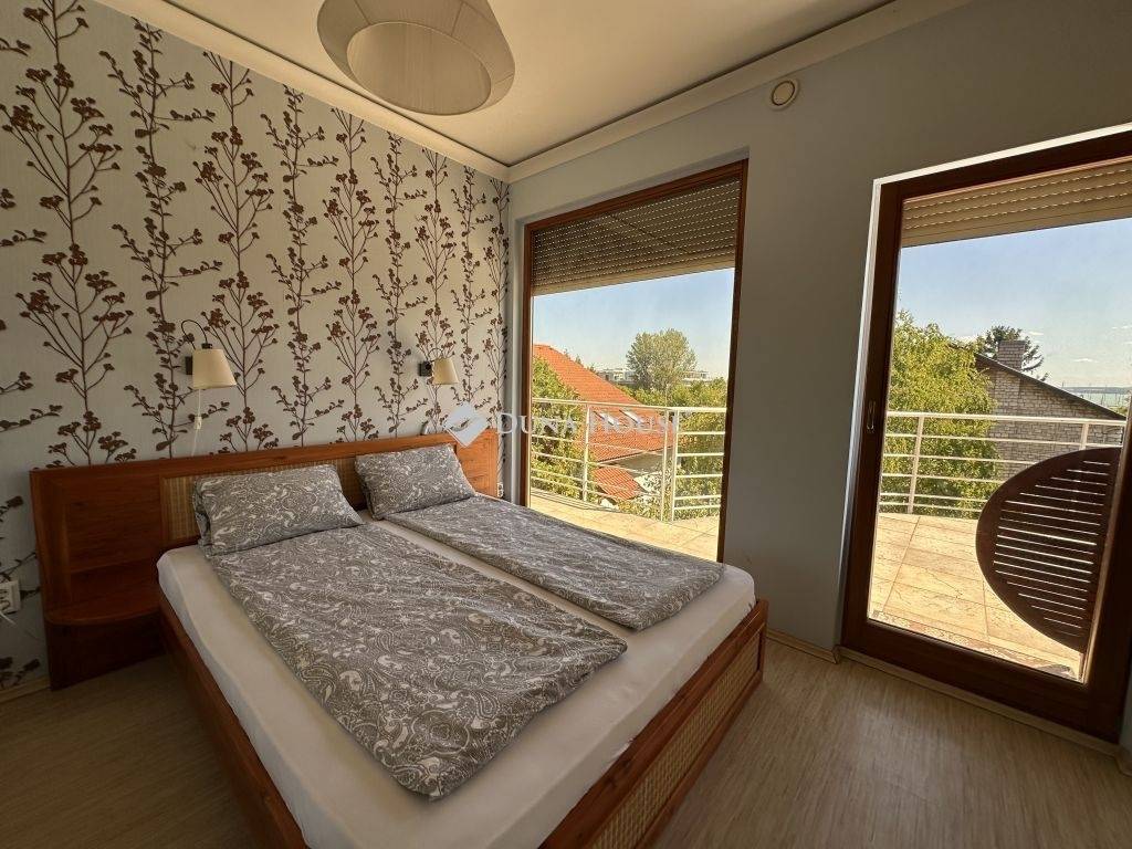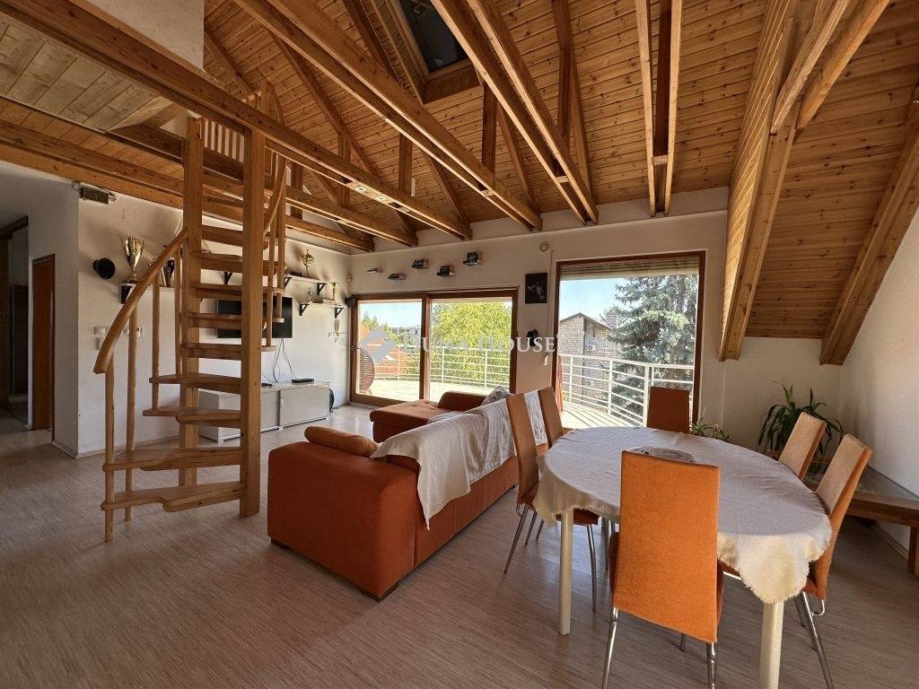 Nyitott fedélszékes tágas és világos 80 m2-es apartman, mely 36,37 m2 nappali, 11,85 m2 szoba, 4,82 m2 konyha, 5,69 m2 fürdő, különálló WC és két tároló helyiségből áll, valamint egy a padlástérben kialakított hangulatos szobából. Az apartmanhoz tartozik egy 22,7 m2-es Balatoni panorámás terasz.