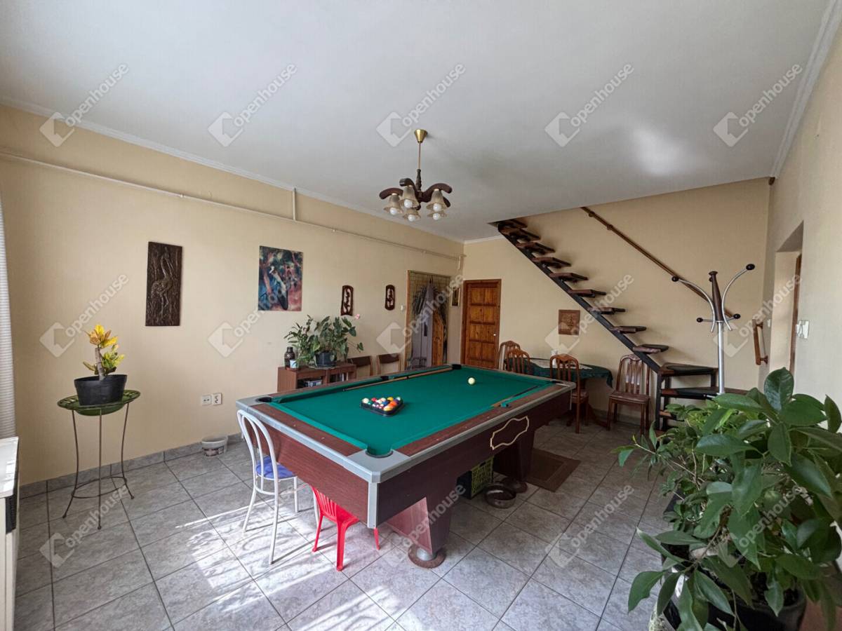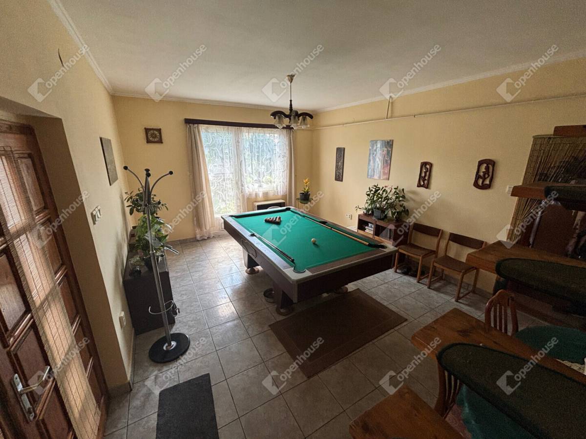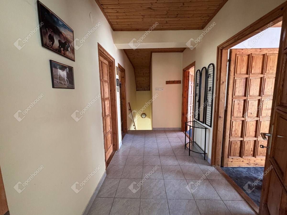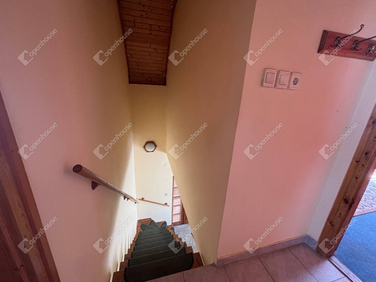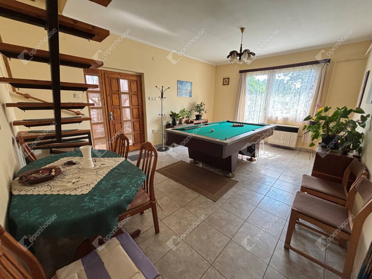 A házba belépve egy hatalmas előtér lépcsőfeljáróval tárul elénk - amely jelenleg egy biliárd és egy étkező asztalnak ad helyet. Befelé haladva a közlekedőben a nappali, egy szoba, fürdőszoba, konyha, kamra és egy külön wc található, a nappaliból nyílik a tágas, déli fekvésű napfényes terasz.