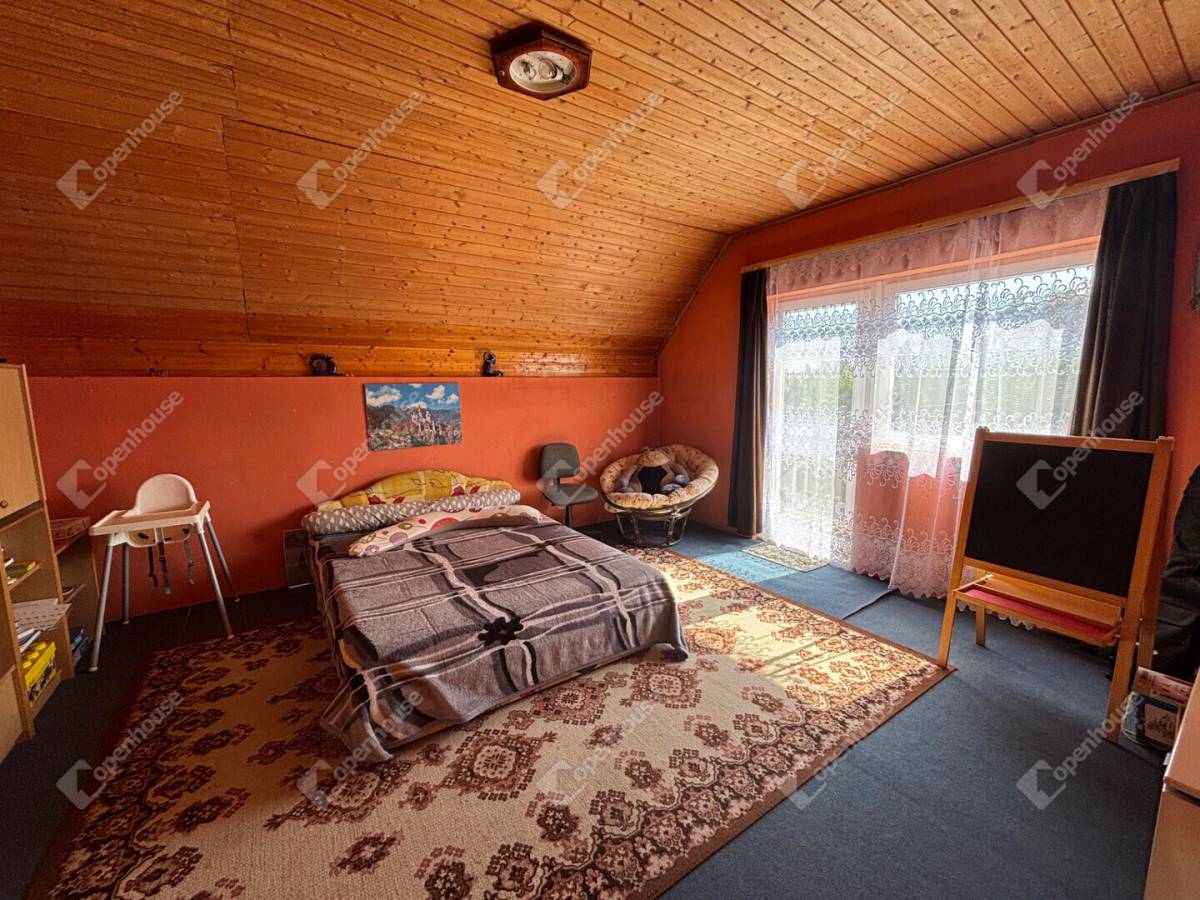 A felső szinten négy szoba és egy fürdőszoba kapott helyet.. A kertre néző két szobához tartozik egy-egy erkély.