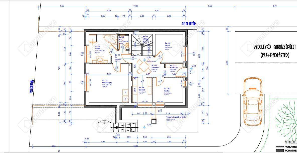 Különálló, 45 m²-es melléképület garázzsal és tárolóval