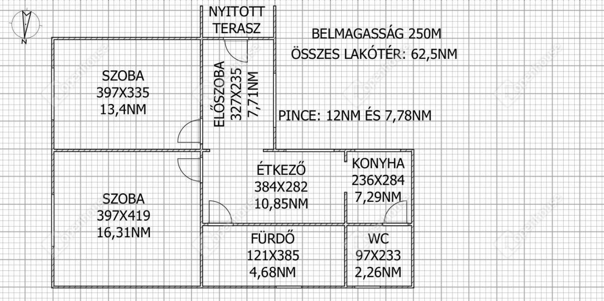Az ingatlan 62,5 négyzetméteres, keleti fekvésű, és egy 1664 négyzetméteres telken található. A házban két szoba, egy előszoba, egy étkező, egy fürdőszoba, egy konyha, egy wc és két pince található és még az udvaron egy duplagarázs is van!