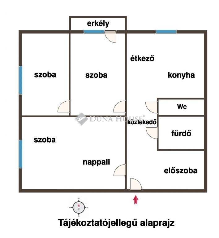 - 3 szoba, konyha - étkező, előszoba, közlekedő, fürdőszoba és WC