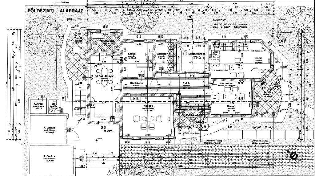 Parkosított kert kerti sütővel és 3 állásos garázs