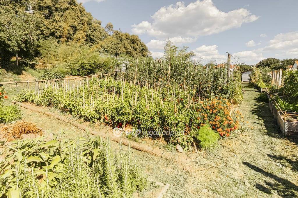 Az irányárba beletartozik egy 3180m2-es belterületi kert, mely átminősítést követően akár 3 építési telekké is osztható. Ezen terület egy része jelenleg művelés alatt áll és számos zöldség- és fűszernövénynek ill. gyümölcsfának ad otthont. A kertben 30db magaságyás, egy fúrt kút, tiszta és jó minőségű vízzel, 66db fügefa, szőlő és egy 40m2-es klímás termesztőház is megtalálható. Az örökzöldekkel körülölelt telkek teljesen privátak, az utcáról szinte egyáltalán nem lehet belátni. Fontos kiemelni, hogy a kert és a teljes terület 25 éve vegyszermentesen művelt és gondozott!