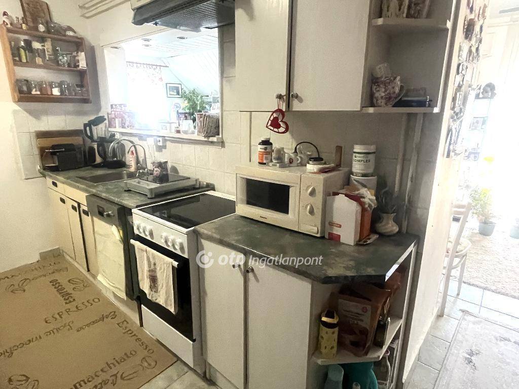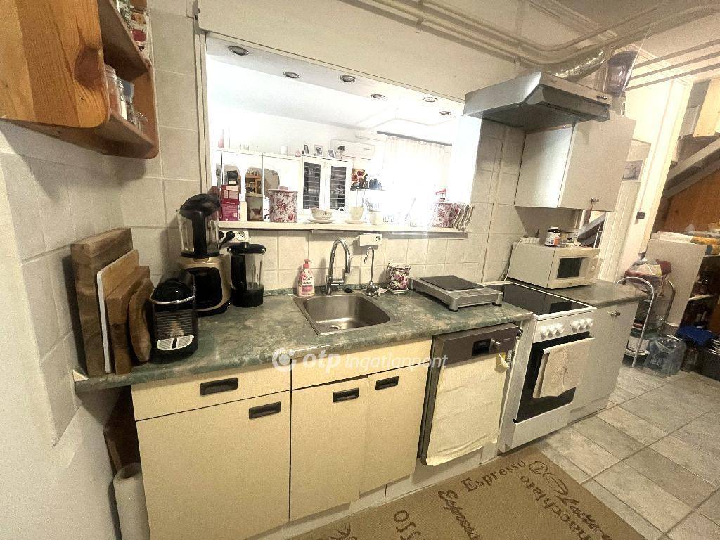 Alsó szinten található a tágas nappali-étkező, konyha, 1 hálószoba, fürdőszoba WC-vel.