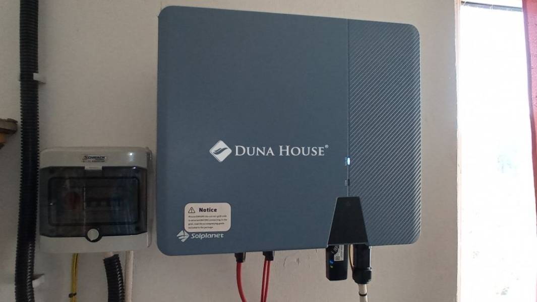 11,2 kW-os napelemrendszer, 2023-tól üzemel, 10 évig éves szaldós elszámolással.