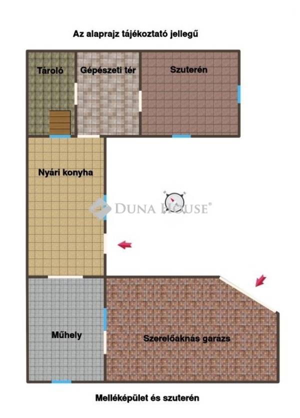 29 m² szerelőaknás garázs, műhely, nyári konyha (szuterénhez vezet) Szuterén: