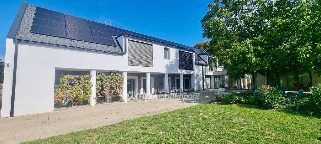 ( 15,8kW/h , szaldós elszámolással) A ház 15 cm vtg.hőszigetelése az 50 cm vastag falazatra van helyezve. Homlokzat 3 rétegű nyílászárói mindkét oldalon színezettek, beltéri mdf ajtói festettek.Tetőtér ferdesíkja 30cm fújt cellulóz szigeteléssel készült,nyílászárói motorizált Velux tetőtéri ablakok.Elektromos autótöltő,motoros kapu, motoros garázsajtó,Wifi és vezetékes hálózat kiépítve. Kamerarendszer a biztonság érdekében. A hangulatos udvar, két zárt garázs valamint a főépületben levő garázsból nyíló 10m2-es pince is az ingatlan része.
