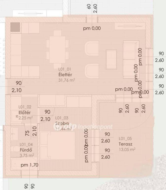 Monolit vasbeton szerkezet, 12 cm külső szigetelés, lapostető víz- és hangszigeteléssel