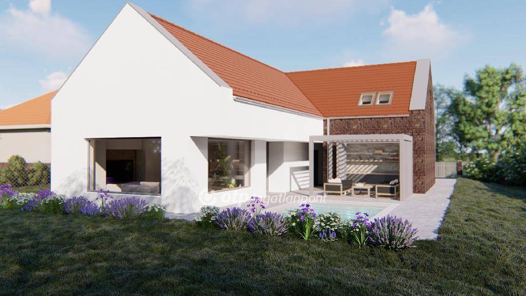 Balatonalmádi csendes, kertvárosi környezetében kínáljuk megvételre ezt a földszint + tetőtér-beépítéses, újépítésű családi házat, amely ötvözi a modern, letisztult építészetet a régi Balaton-felvidéki tornácos házak hangulatával.